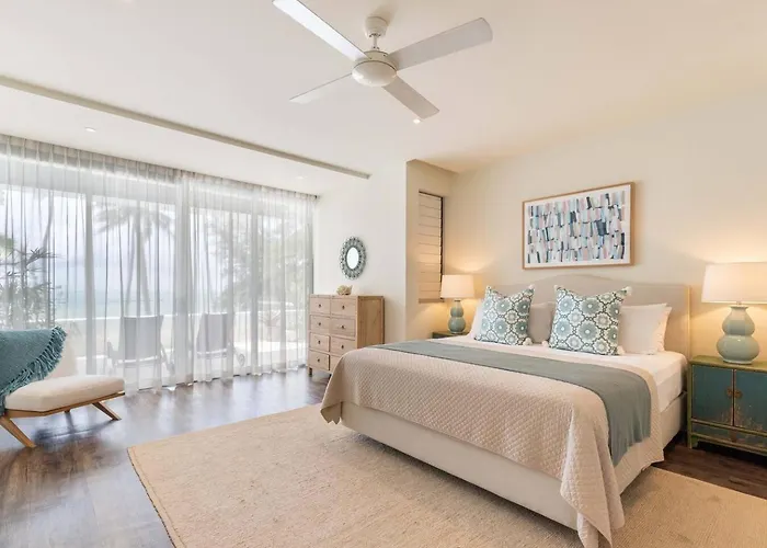 Das 204 m² große Drift Beachfront Oasis - A Panoramic Resort Getaway Palm Cove liegt zudem ungefähr 600 Meter vom Palm Cove entfernt. Dieses 2-Zimmer-Apartment verfügt über eine Terrasse mit einem Blick auf den Garten.